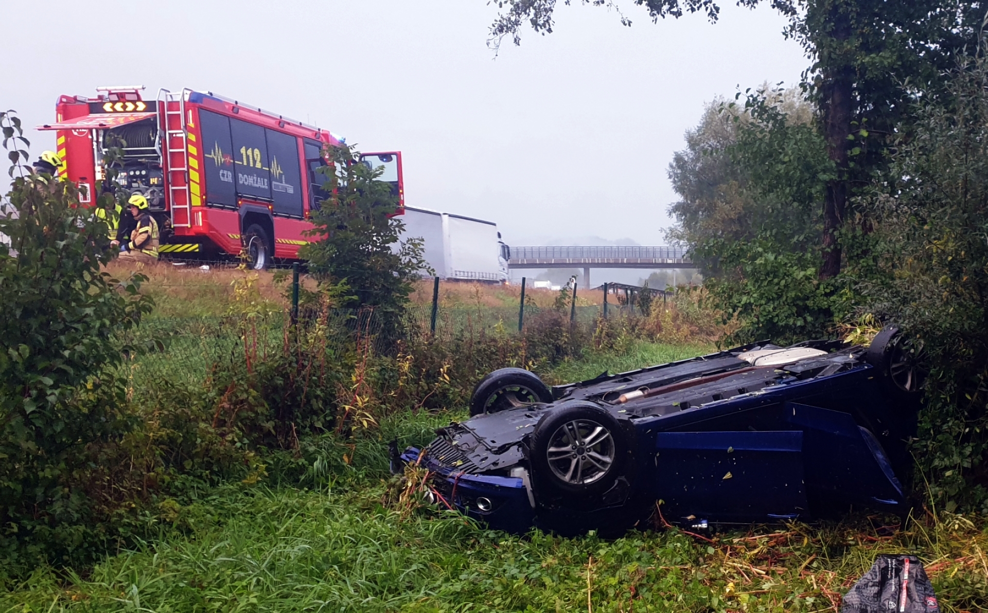 Okoli 17:30 je voznik osebnega vozila izgubil oblast nad vozilom in zapeljal s ceste. Nesreča se je zgodila na AC pri Lukovici. Vozilo se je večkrat prevrnilo in pristalo na strehi izven vozišča. V nesreči se je voznik lažje poškodoval in sam prišel iz vozila, čeprav je bilo vozilo popolnoma uničeno. Gasilci smo zavarovali kraj nesreče, pregledali voznika in ga predali v oskrbo reševalcem NMP ZD Domžale. Na vozilu smo odklopili akumulator in ga postavili na kolesa.