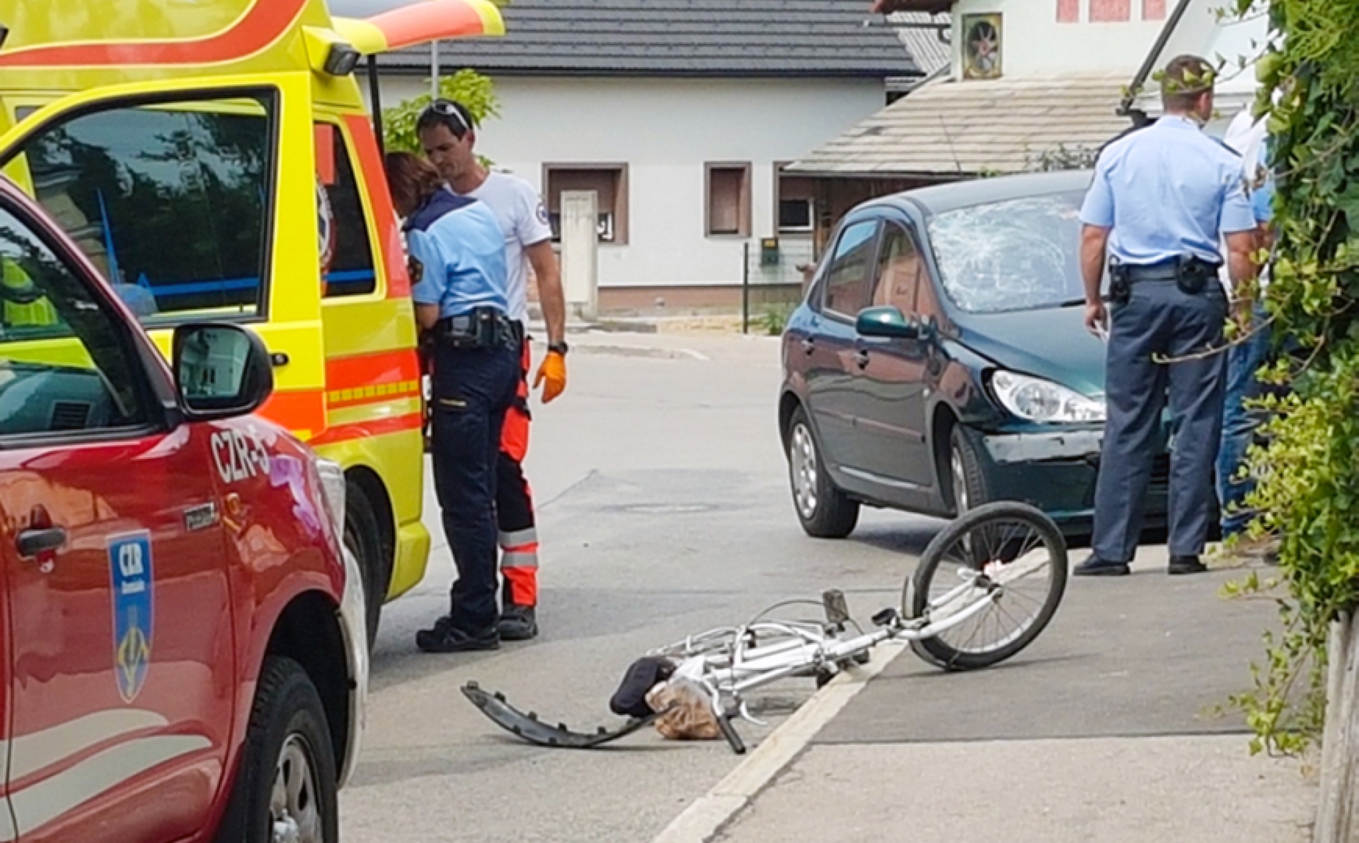 V Homcu voznik osebnega vozila trčil v kolesarja